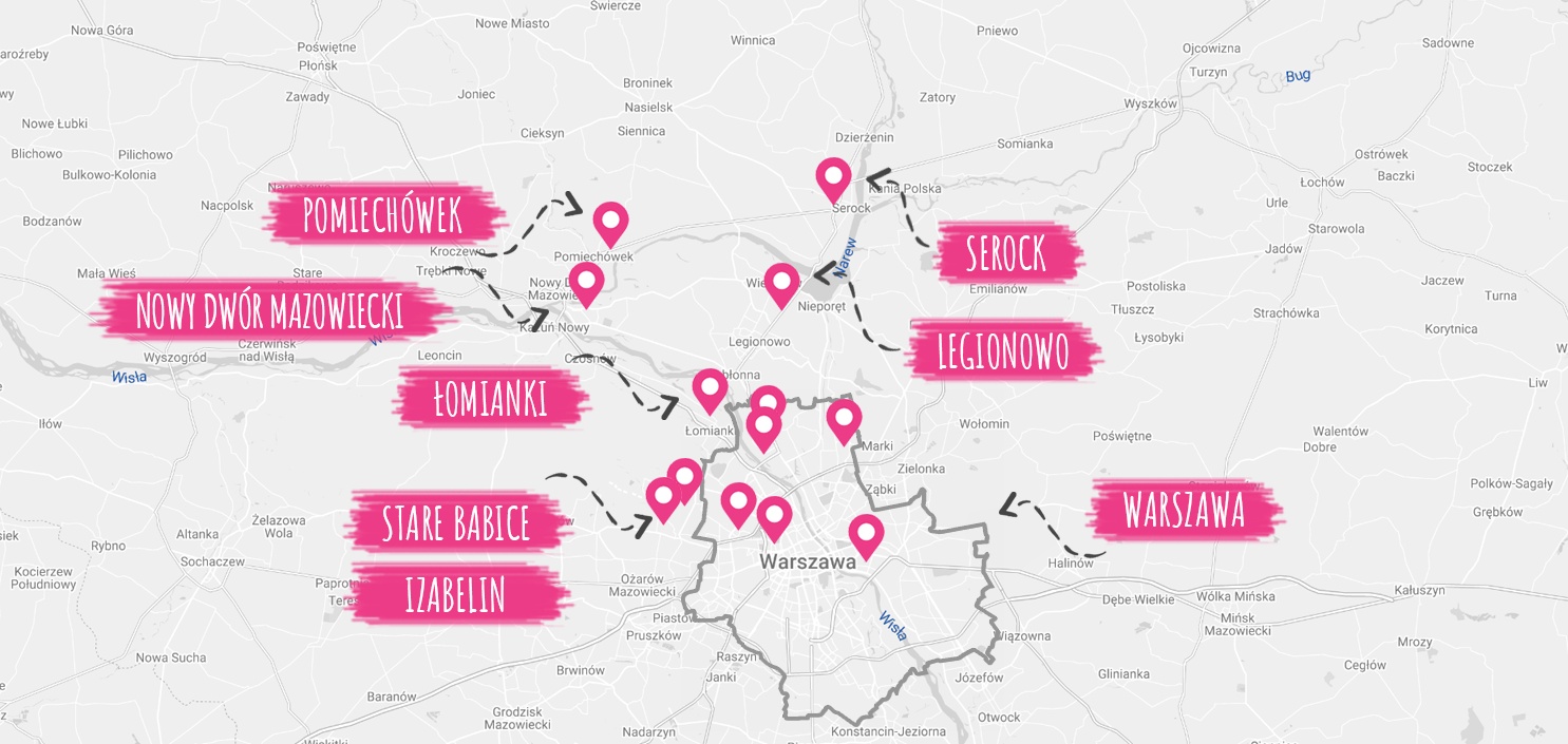 Legionowo, Łomianki, Pomiechówek, Stare Babice, Serock, Nowy Dwór Mazowiecki, Izabelin